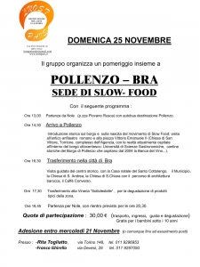 Il Gruppo “L Nost Pais” invita tutti a passare un pomeriggio insieme per visitare il Borgo di Pollenzo e la città di Bra ,dove ha sede Slow Food, come da programma allegato.
